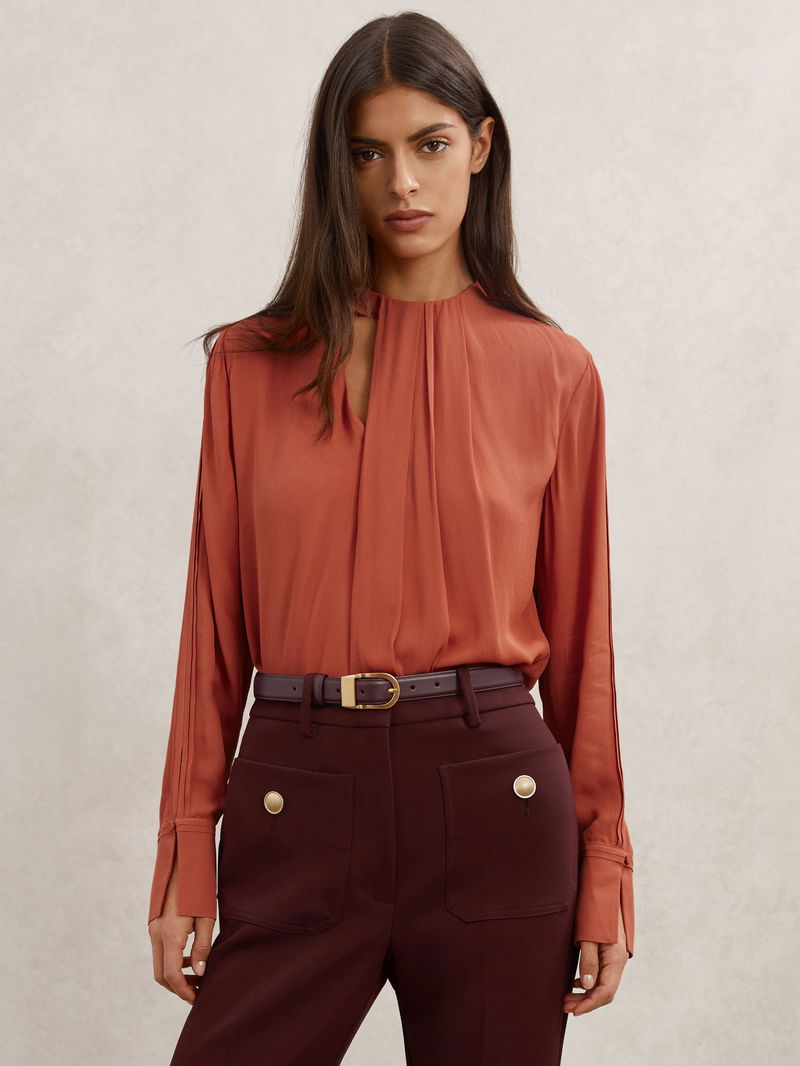 Drape-Detail Asymmetric Blouse In Copper