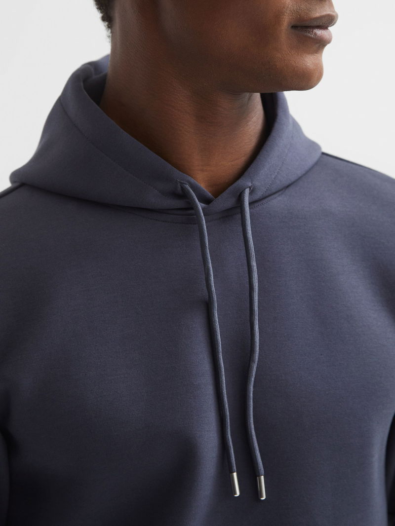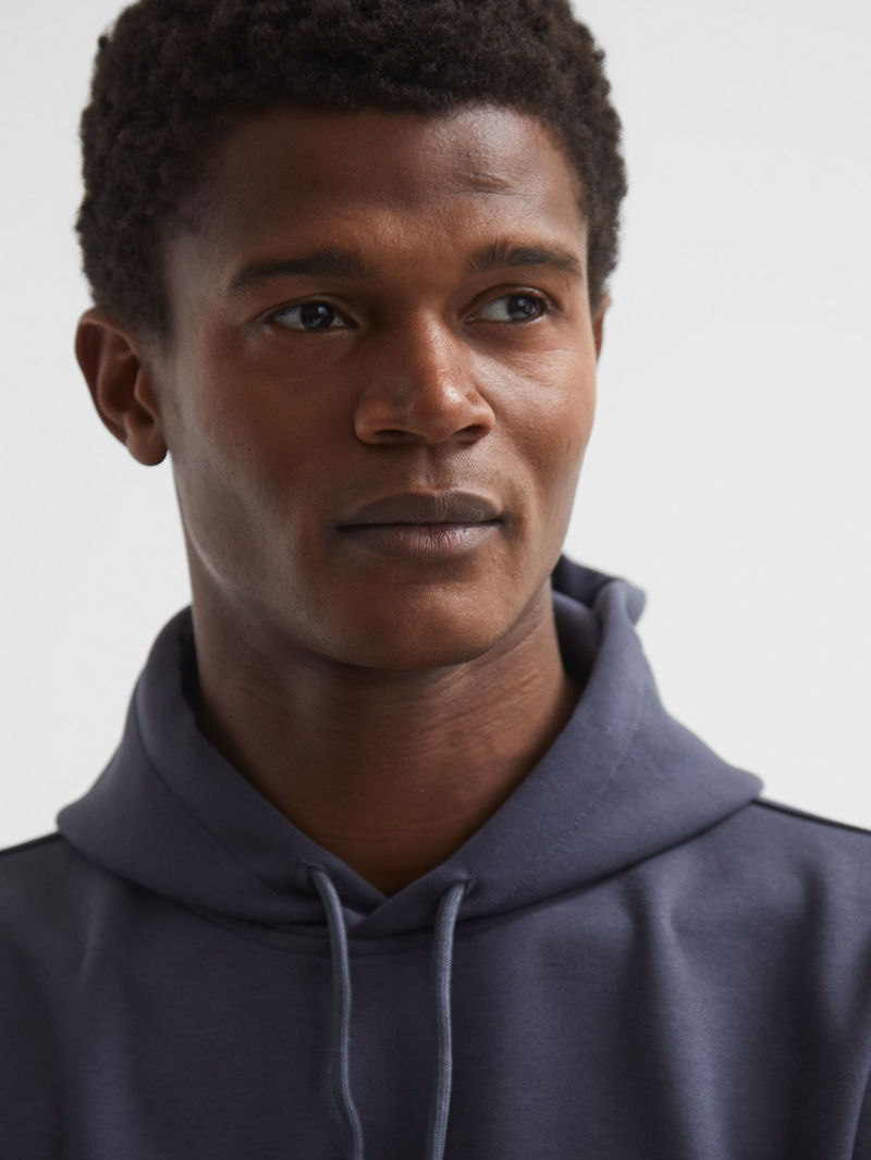 Elevate your casual edits with the Fabien hoodie in airforce blue. It’s crafted from a soft, comfortable jersey fabrication. Keep your look effortless by pairing it with the coordinating joggers, then add Reiss leather trainers.