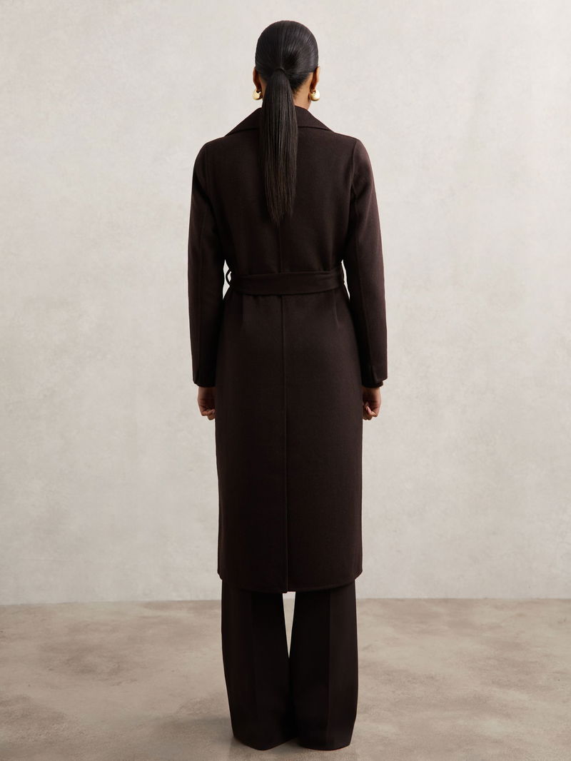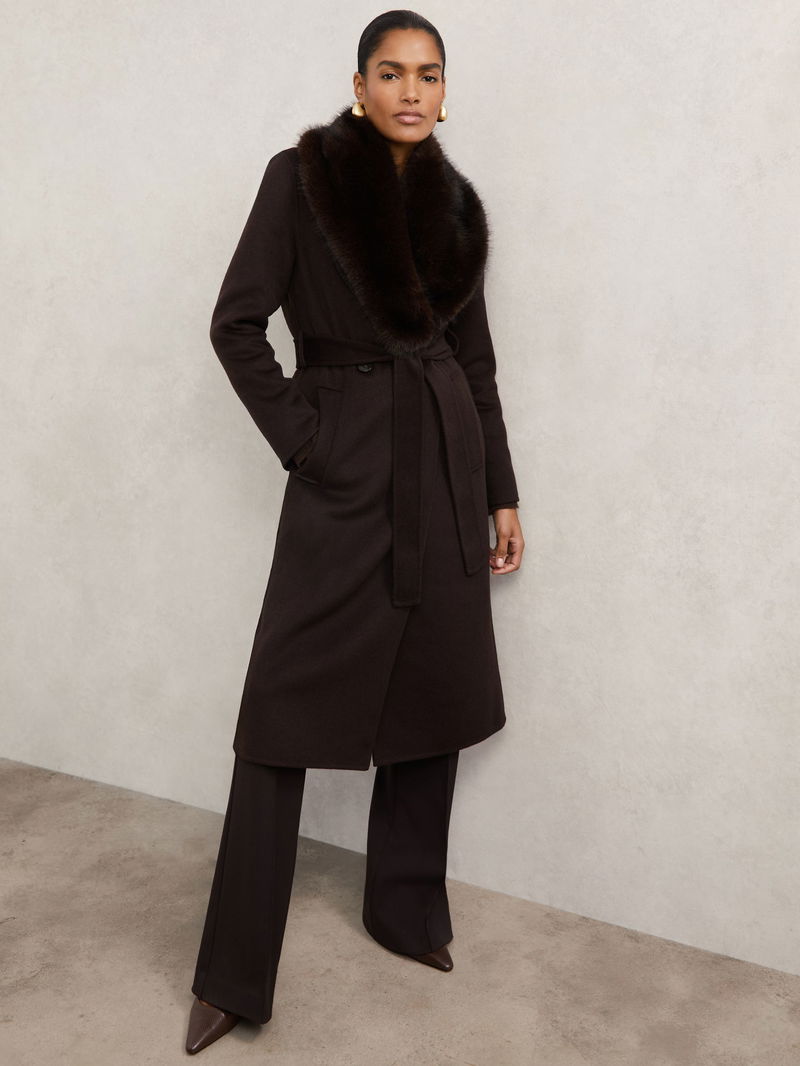 Faux-Fur Collar Blindseam Coat Wool-Blend In Chocolate Brown