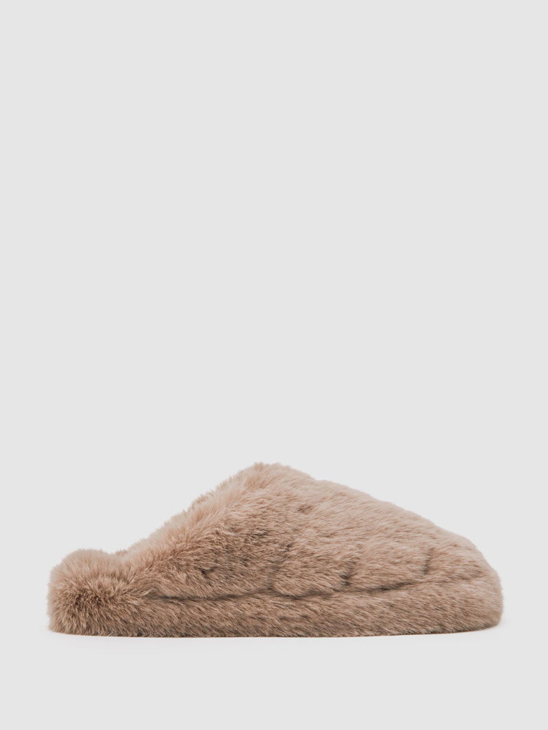 Faux Fur Slippers In Taupe