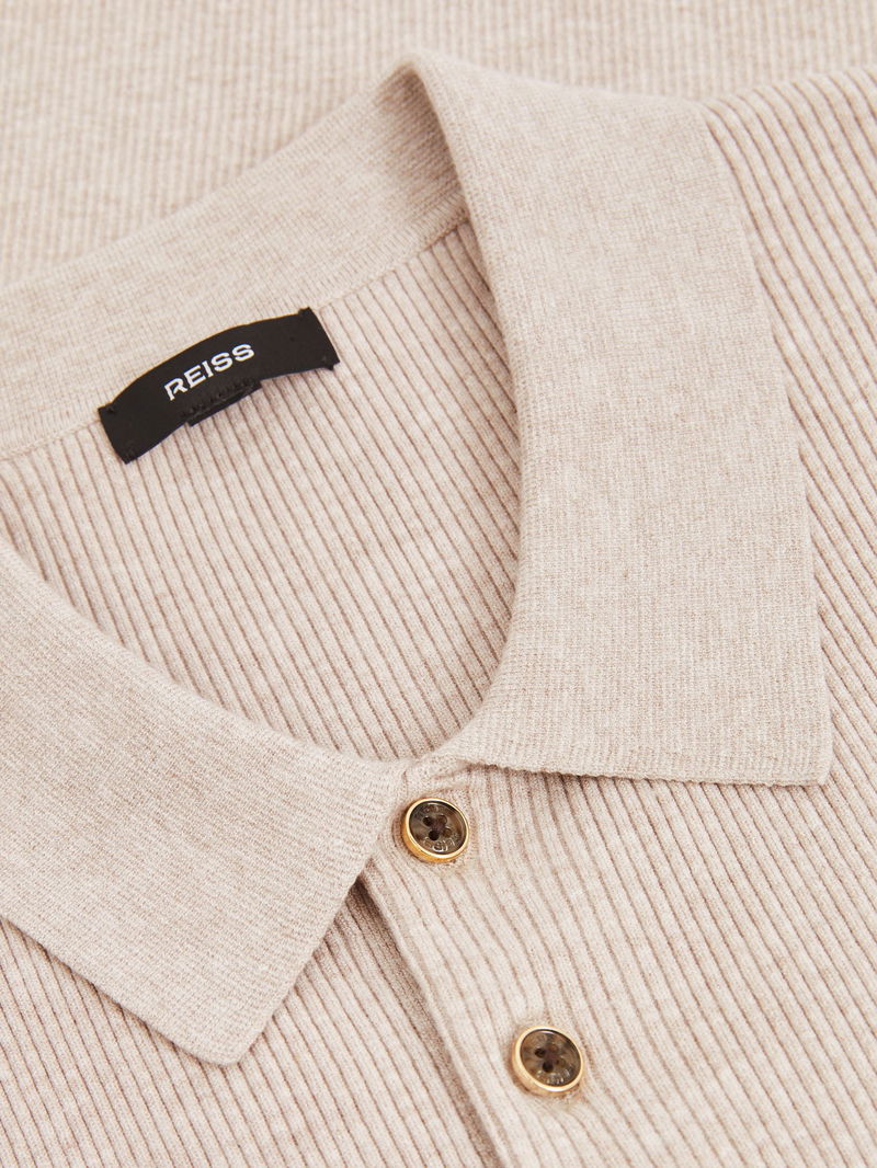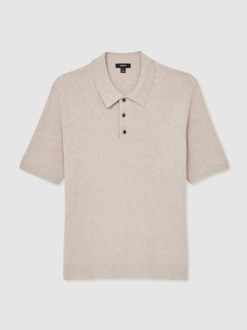 Fine-Rib Short-Sleeve Polo Shirt In Oatmeal