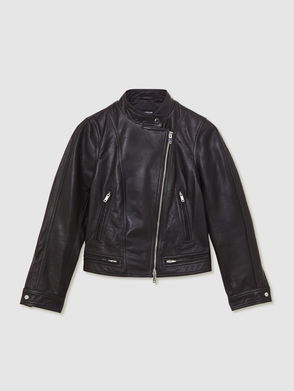 The Astra biker jacket is crafted from supple leather and cut to a fitted silhouette, offering a sleek take on classic moto style. A standing collar, dual front zip and press-stud details lend an authentic, elevated finish.