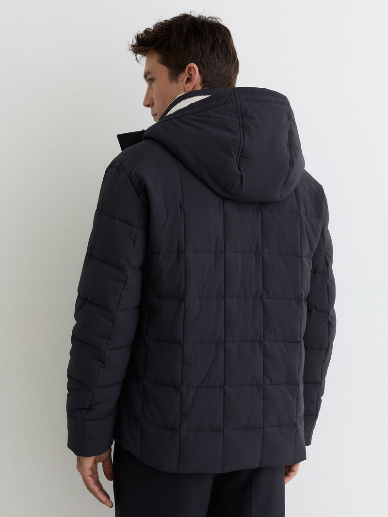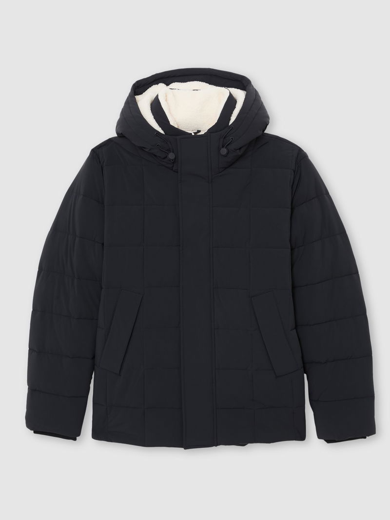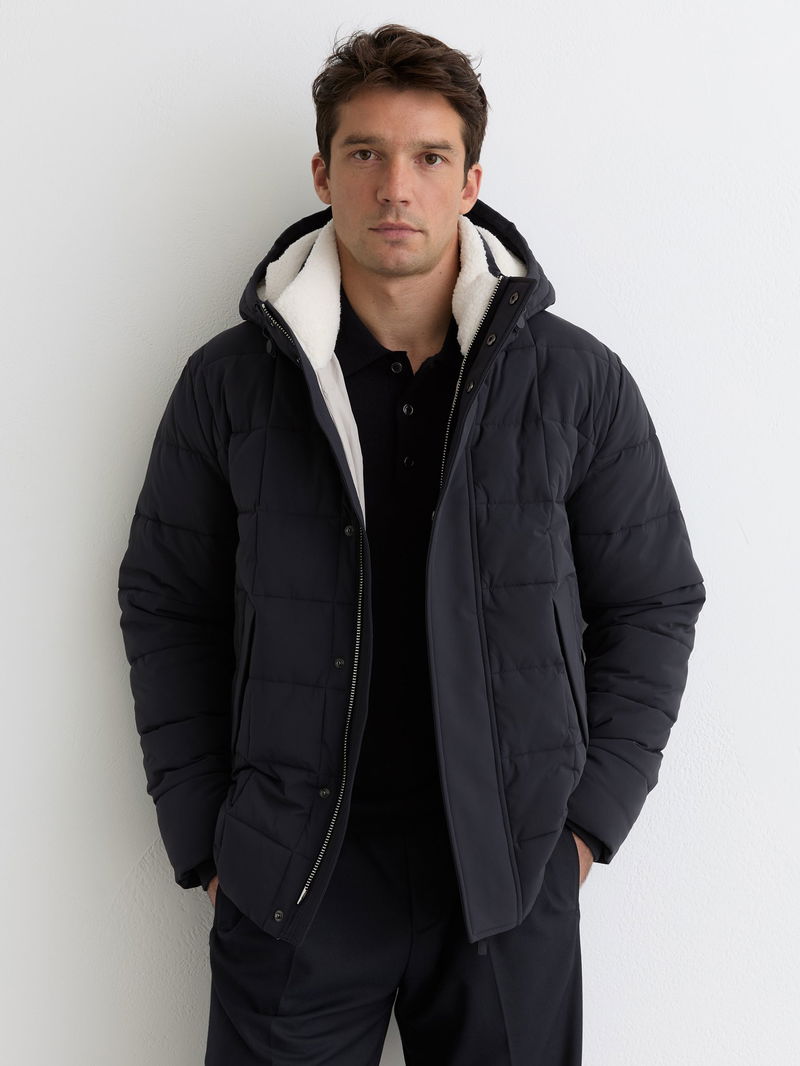 Fleece-Lined Hooded Puffer Jacket In Navy