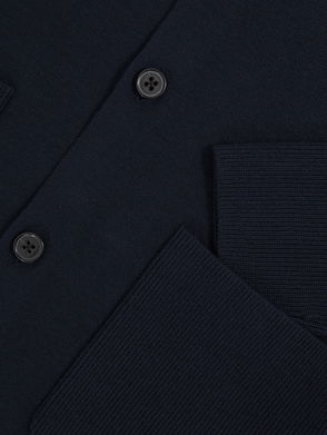 This long-sleeve black Forbes cardigan is spun from warming merino wool with a high-stretch handle and it fastens with branded buttons.