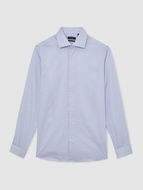 The Frontier shirt is crafted from a cotton fabric with 4% Elastane stretch and a luxurious satin finish. This shirt has been designed with comfort in mind and the two-way stretch allows this shirt to be cut to a slim contemporary silhouette without compromising movement. The Reiss true formal collar offers a perfect pairing with a traditional tie and modern work suit an immaculately tailored look. Its more formal size also allows the collar to sit perfectly with or without a suit jacket while slightly unbuttoned for that uncompromisingly formal/casual off duty look.