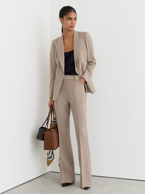 The berry Gabi trousers are a contemporary take on a classic style, designed with flared hems for an added impact. Their smooth-feel fabrication gives a natural fluidity. Style with a Reiss blouse and blazer for a work-to-weekend edit that demands confidence.