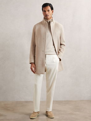 Crafted from a wool blend for a soft hand feel and superior insulation, the Gable overcoat in ivory is an outerwear investment which is sure to fast become a firm favourite as the weather cools. Wear over tailoring during the week and over a crew-neck knit and chino trousers on the weekend.