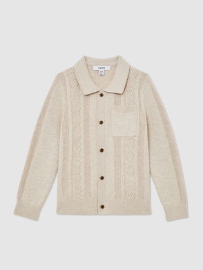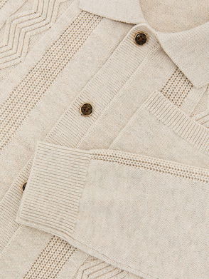 The paprika red/off-white Terrazzo shirt is defined by geometric embroidery crafted from contrasting trims.
