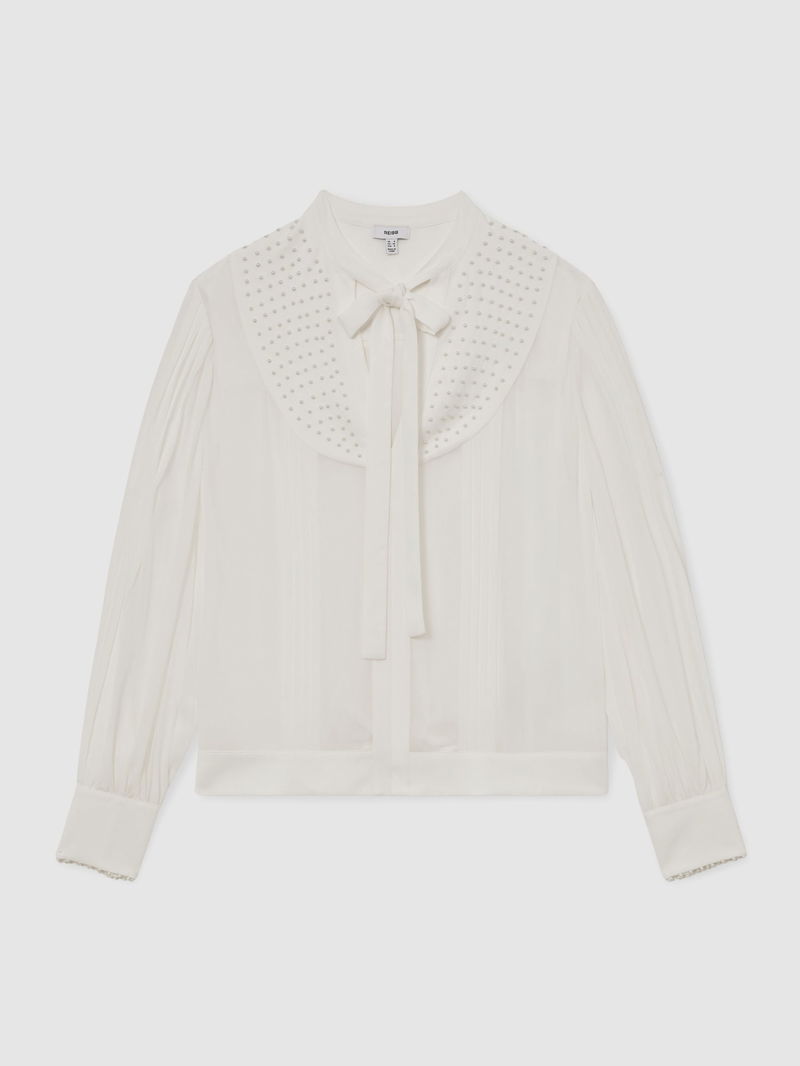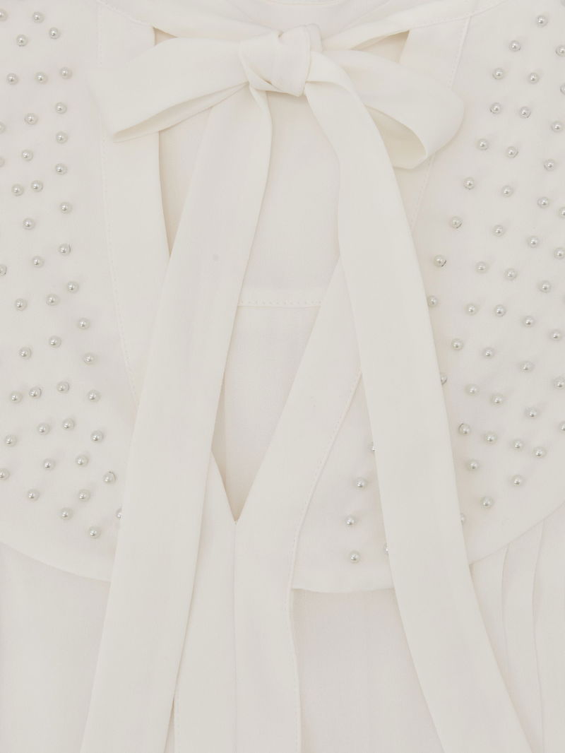 Georgette Tie-Neck Beaded Blouse In Ivory