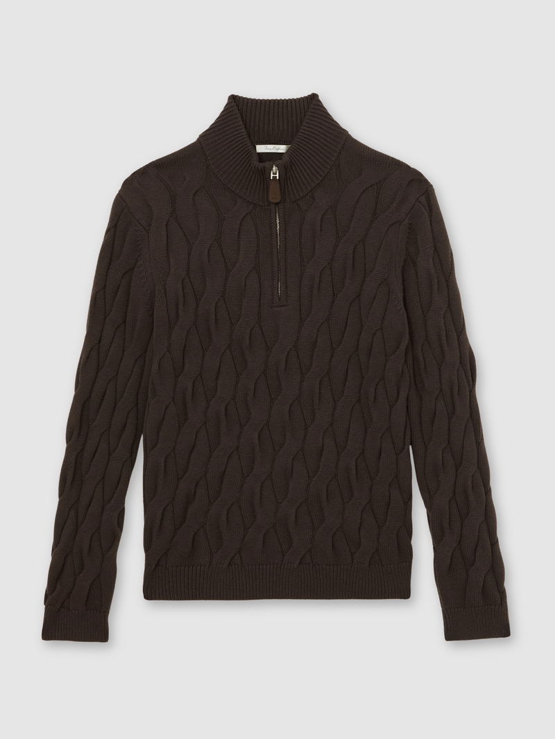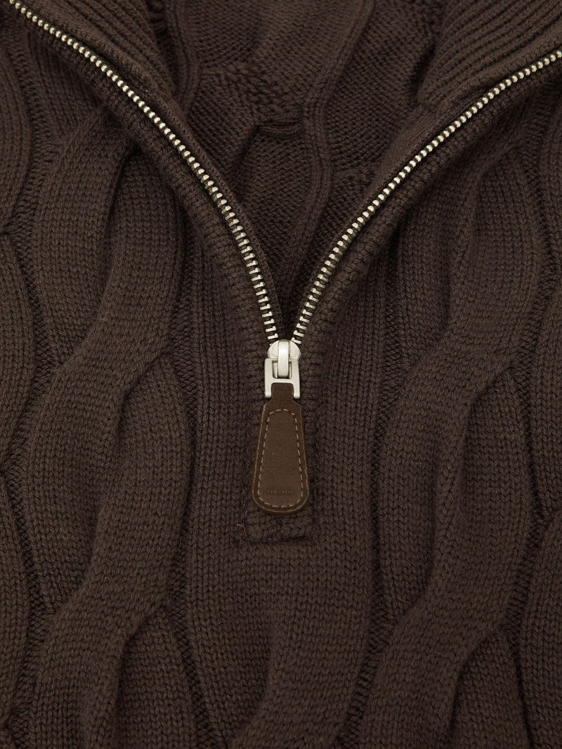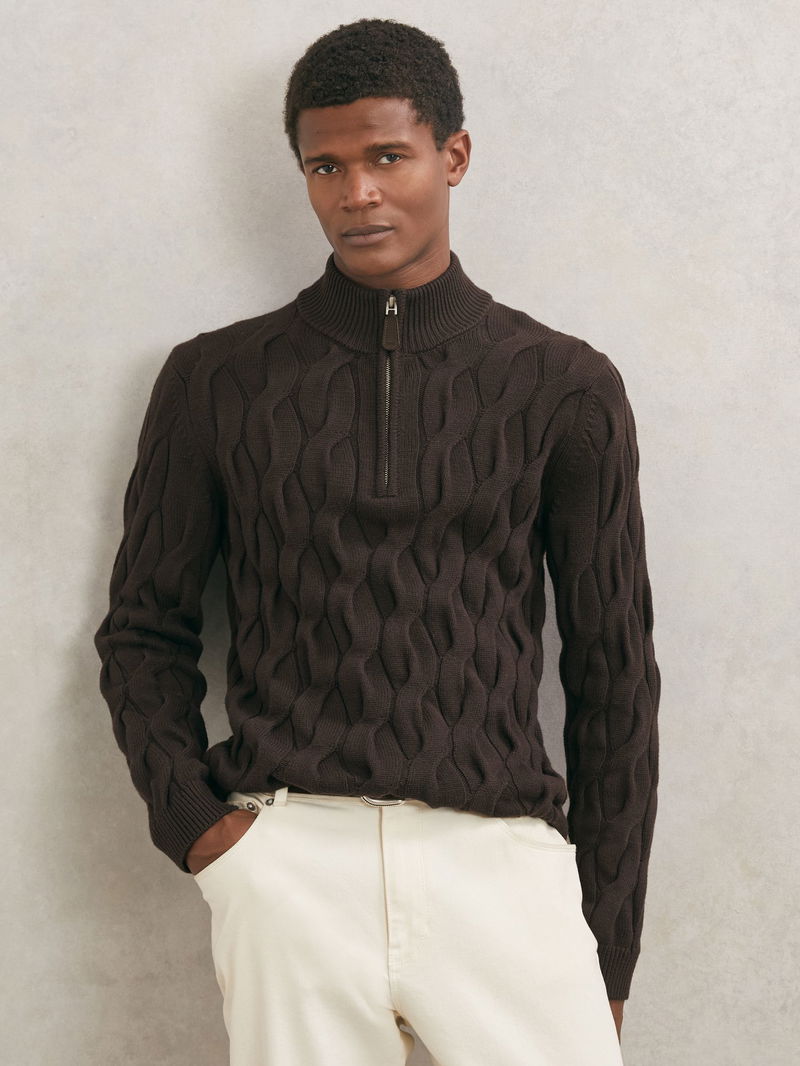 Half-Zip Cable-Knit Jumper With Wool In Chocolate Brown