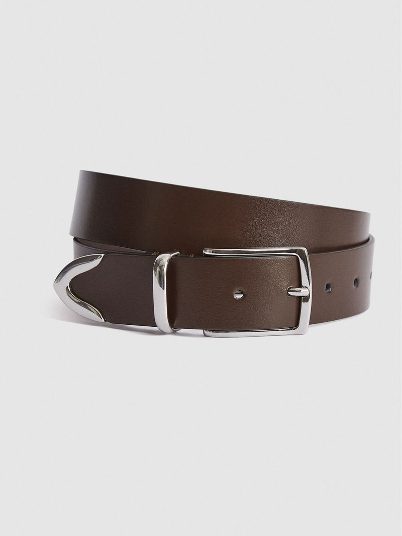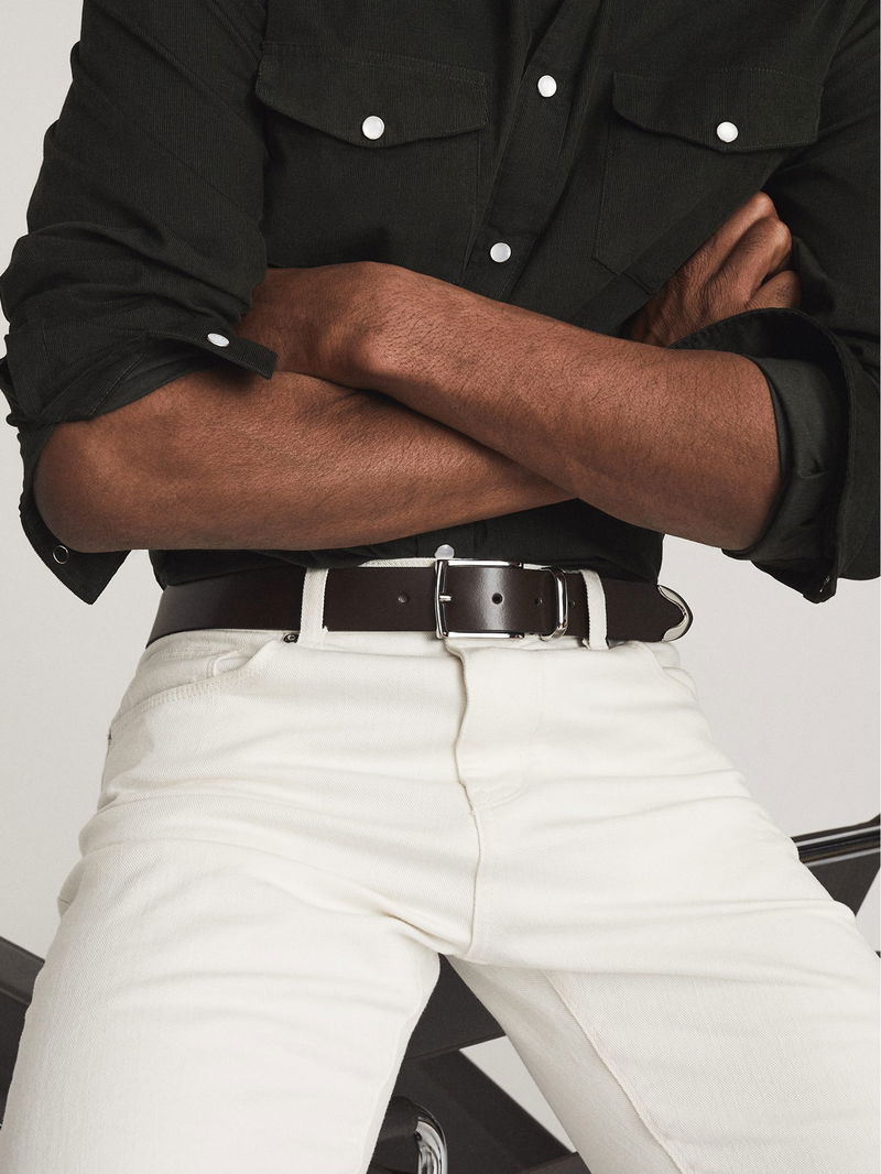Blending a sense of luxury with Seventies-inspired style, the Henning leather belt in brown is a wardrobe essential that is suitable for casual occasions. Wear it with a shirt and jeans at the weekend.