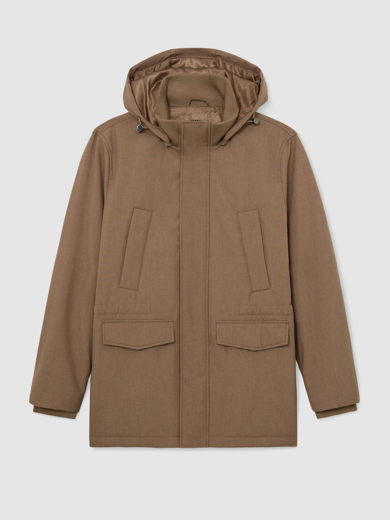 Hooded Zip-Through Padded Coat In Light Brown