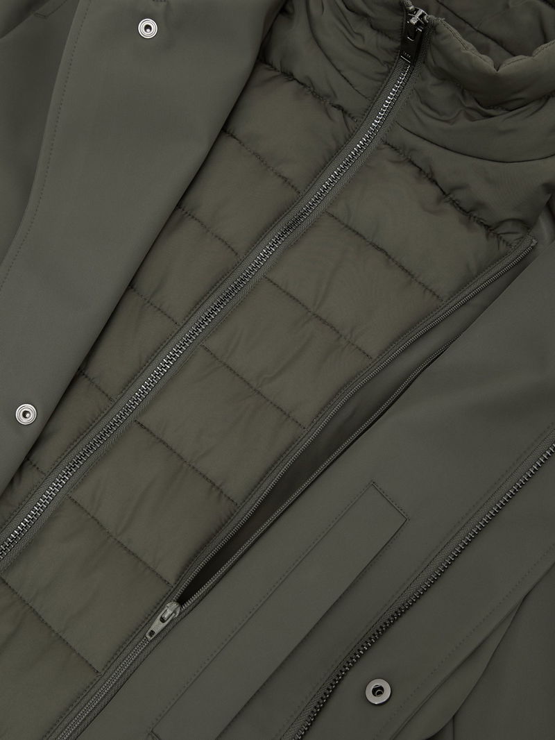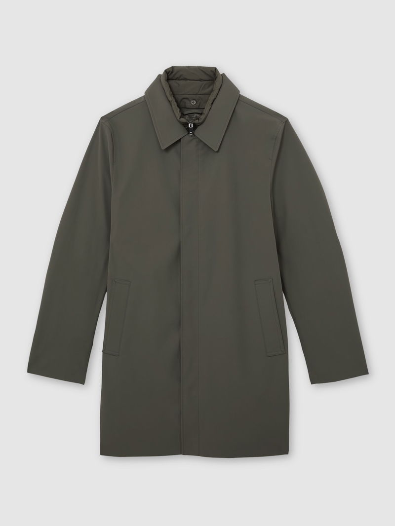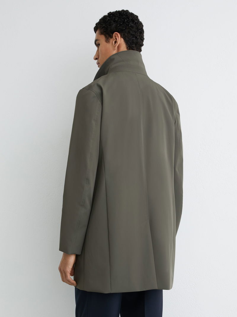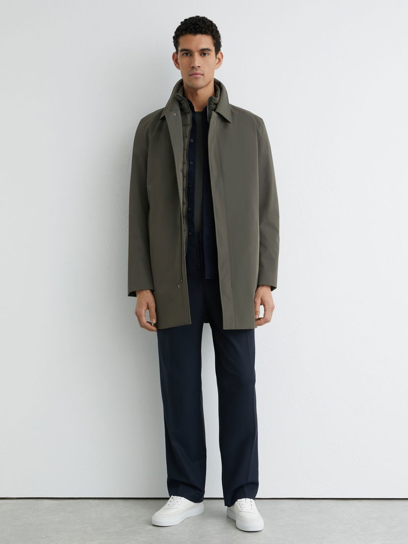 Hybrid Removable Funnel Neck Overcoat In Khaki Green