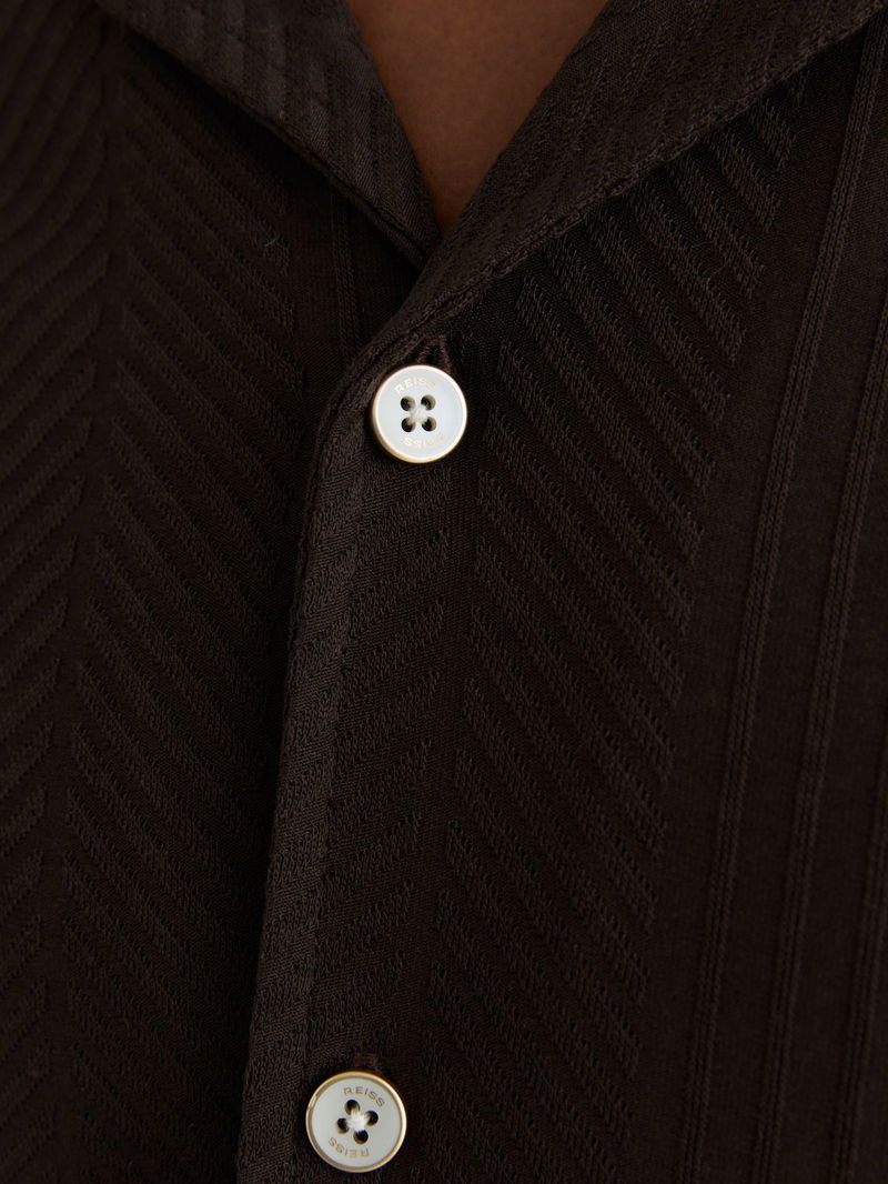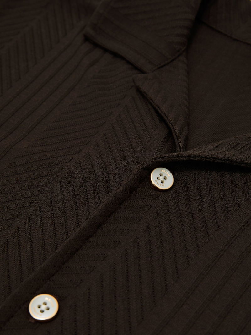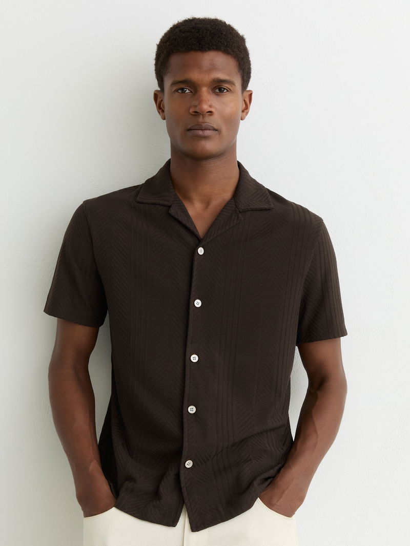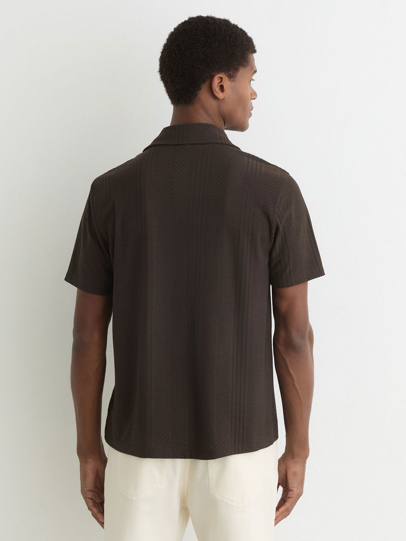 Jacquard Cuban-Collar Shirt In Dark Brown