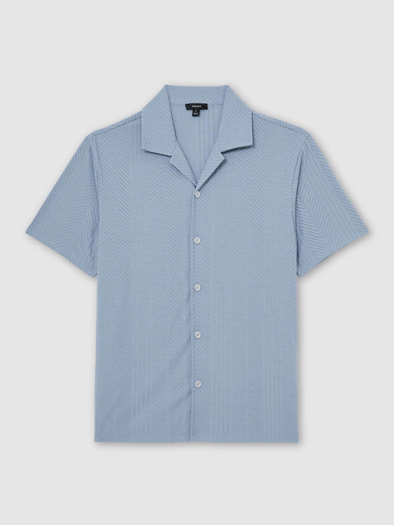Jacquard Cuban-Collar Shirt In Soft Blue