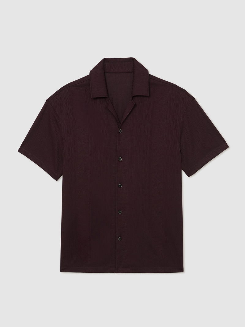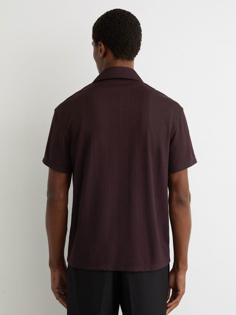 Jacquard-Stripe Cuban-Collar Shirt In Cherry Red