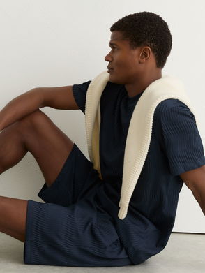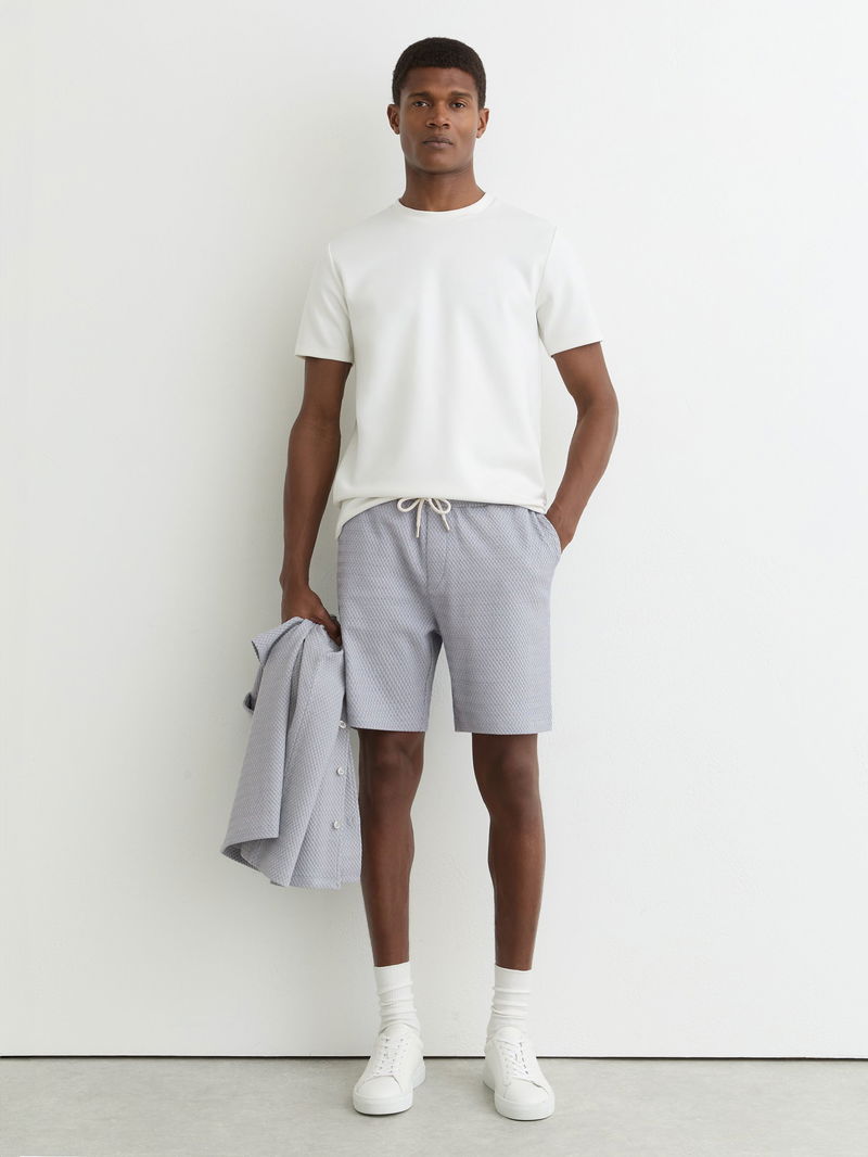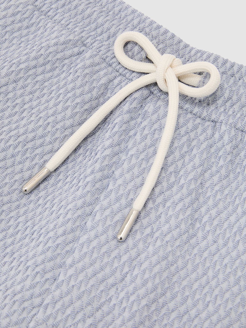 Jacquard Textured Drawstring Shorts In Soft Blue