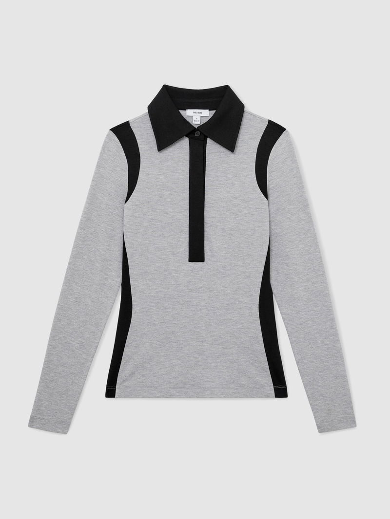 Jersey Colour-Block Collared Shirt In Grey Marl/Black