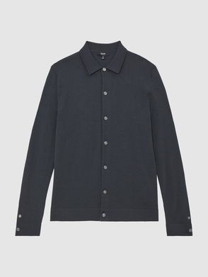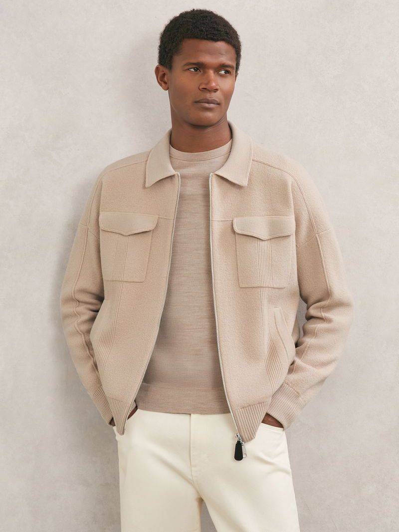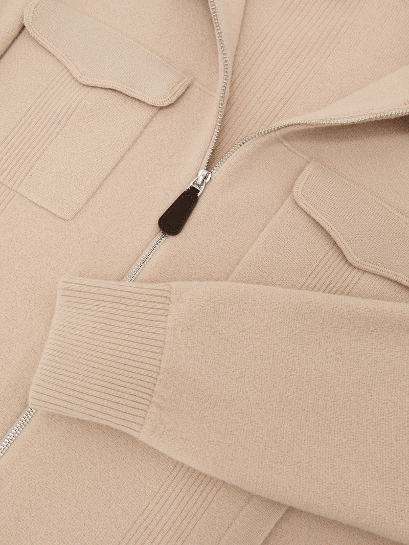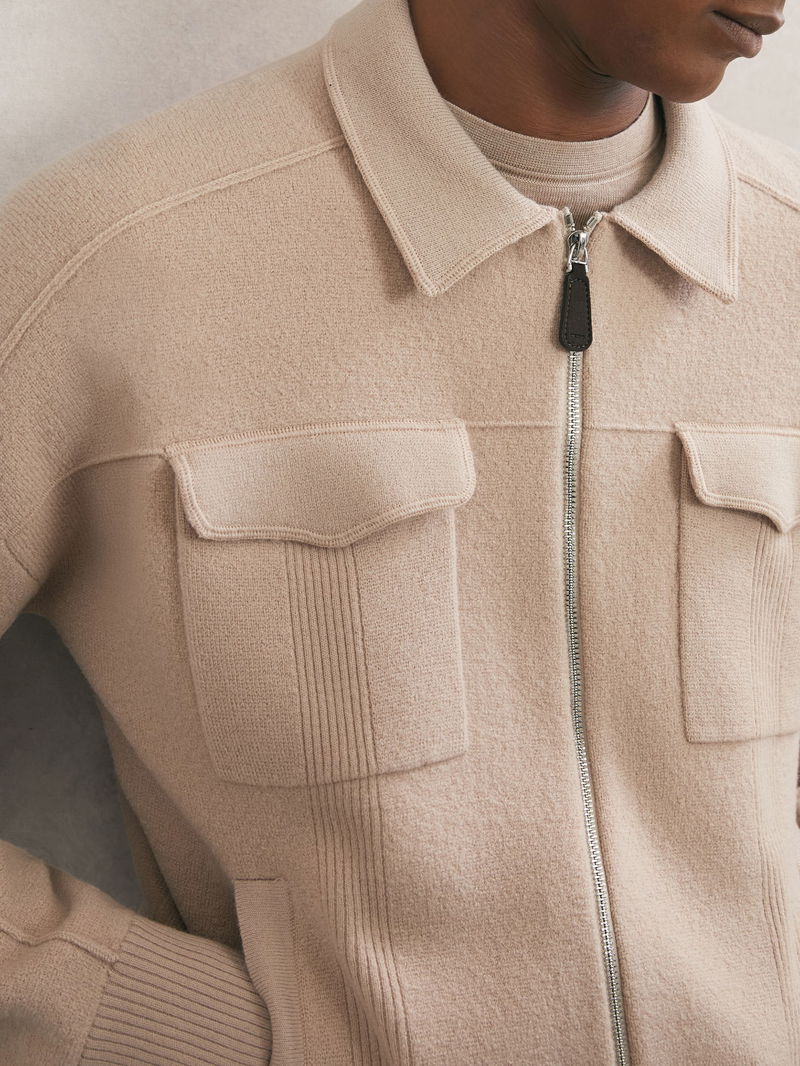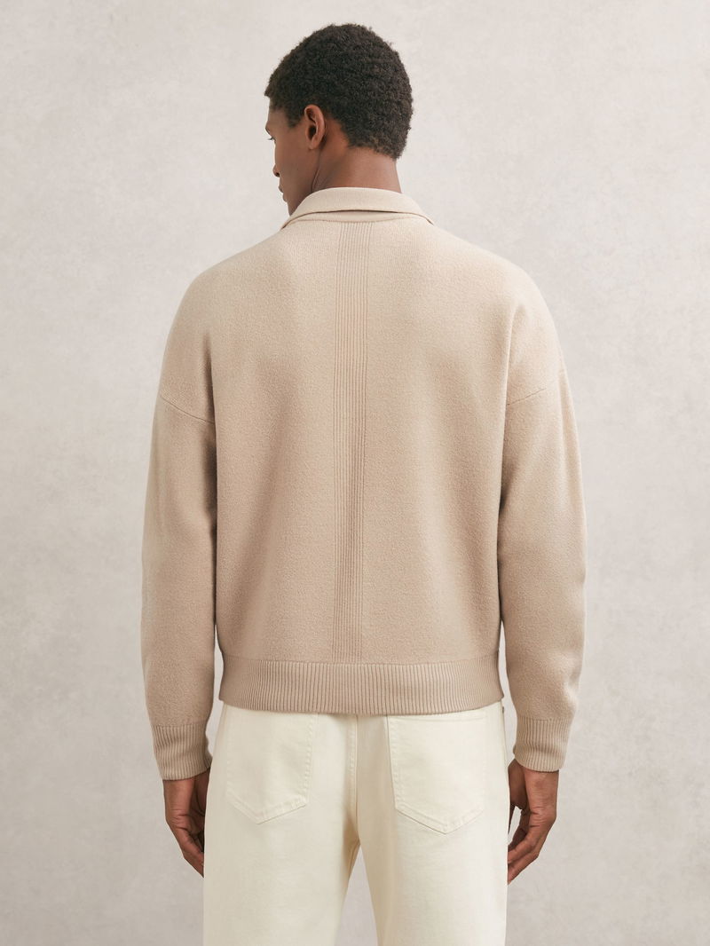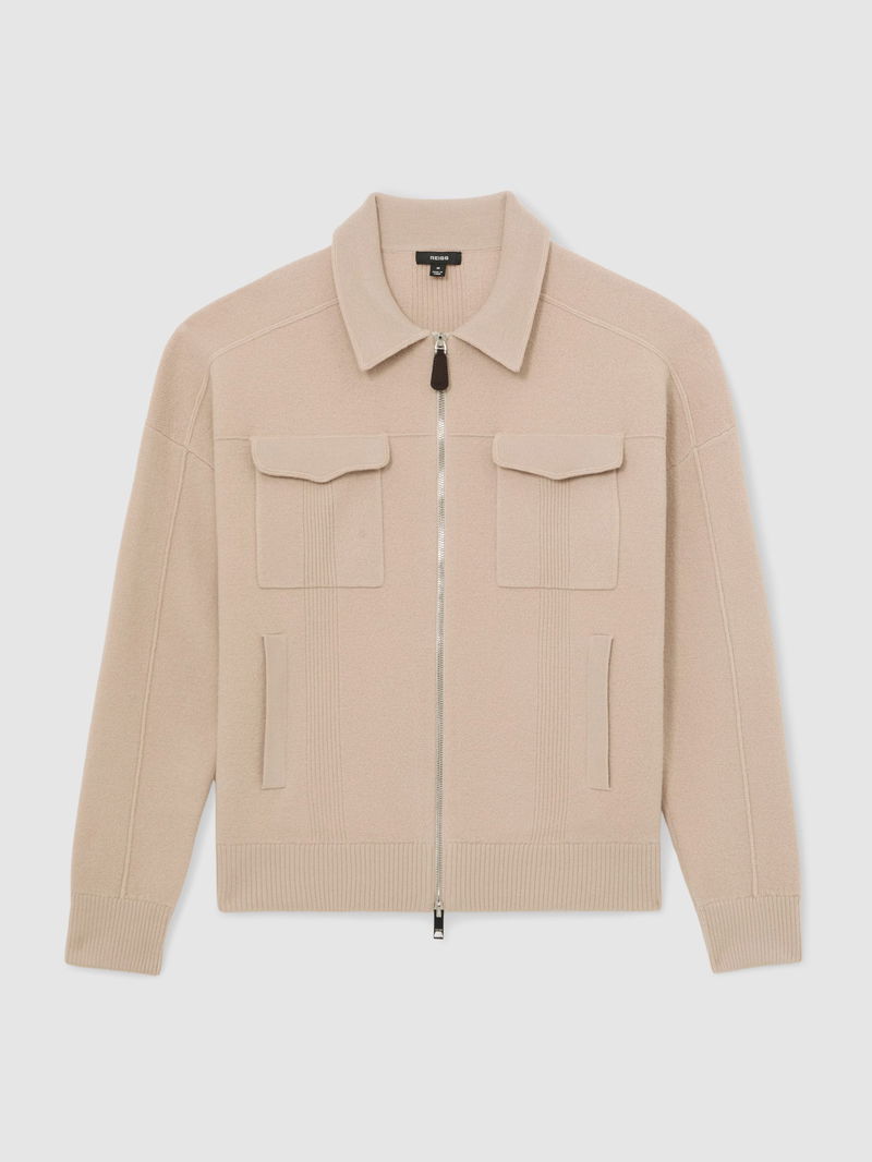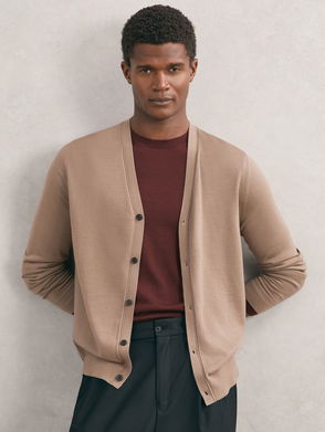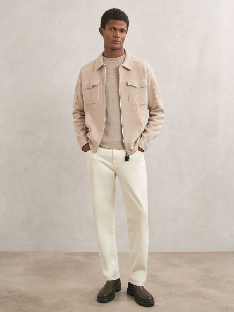 The Calder cardigan is knitted from soft merino wool, with rib-knit detailing offering textural interest. It features a classic collar, two flap pockets and a dual front zip.