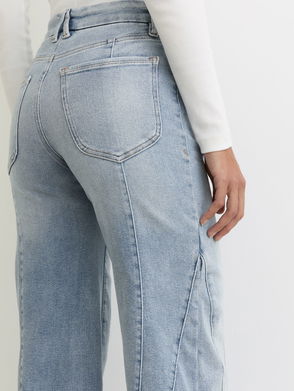 Structured mid-blue denim is enhanced with 1% stretch for the Juniper flared jeans. Visible front seams add to an urban mood.