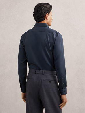 The Kiana shirt in navy is crafted from a cotton poplin fabric with 4% Elastane stretch. The two-way stretch allows this shirt to be cut to a slim contemporary silhouette without compromising movement and comfort. The bluff collar and concealed front placket gives this shirt a versatile purpose where it can be worn casually with jeans and trainers, perfect for going out or dressed up formally with a suit and tie for a modern tailored look.