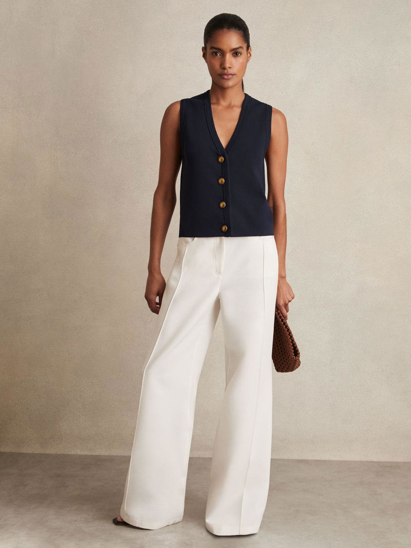 The Gaia vest is a refined layer, crafted from a compact stretch-knit fabric.