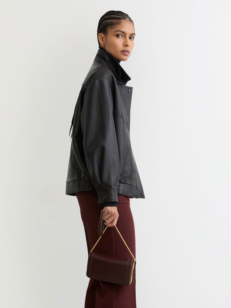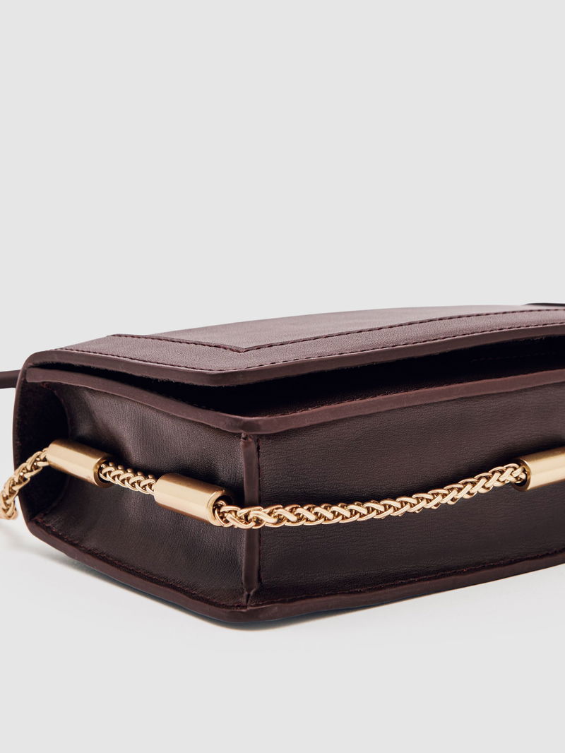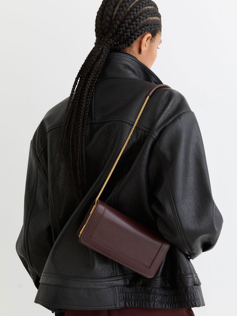 Leather Chain-Strap Shoulder Bag In Burgundy