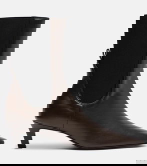 The Brown Phoebe boots are crafted from smooth, lightly burnished leather for subtle depth and character. Their classic Chelsea profile features elasticated gussets and pull tabs for ease, while a prominent round toe and thick sole add a chunky, modern edge.