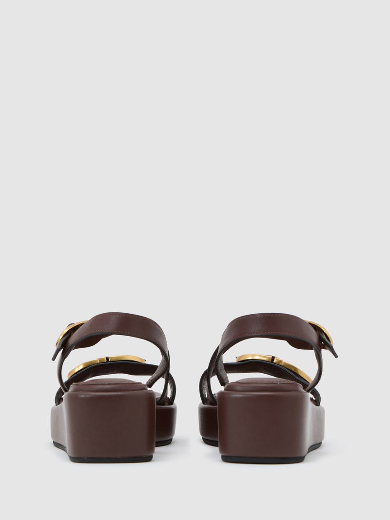 Leather Double-Buckle Flatform Sandals In Chocolate