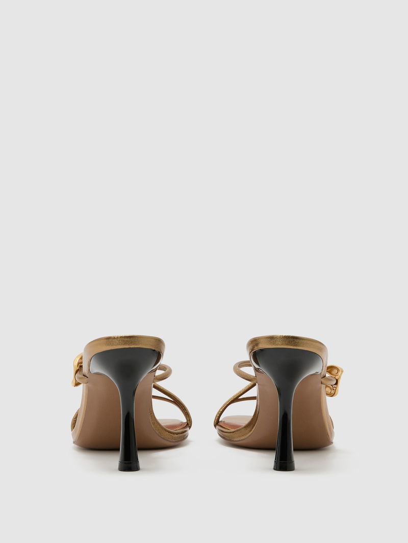 Leather Metallic Detail Heeled Sandals In Dark Gold