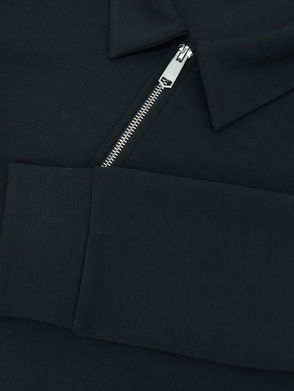 The half-zip closure, framed with soft leather trim, adds a luxe touch, while a hint of stretch ensures a comfortable, supple feel.