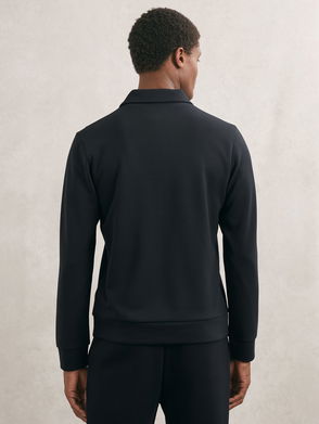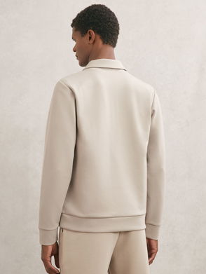A compact interlock jersey knit, the Hale jumper offers exceptional warmth and a refined aesthetic. The half-zip closure, framed with soft leather trim, adds a luxe touch, while a hint of stretch ensures a comfortable, supple feel.