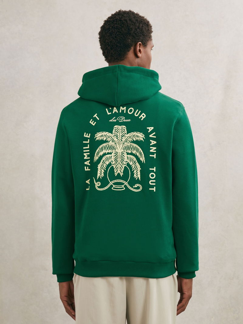Les Deux Cotton Artwork-Print Hoodie In Evergreen