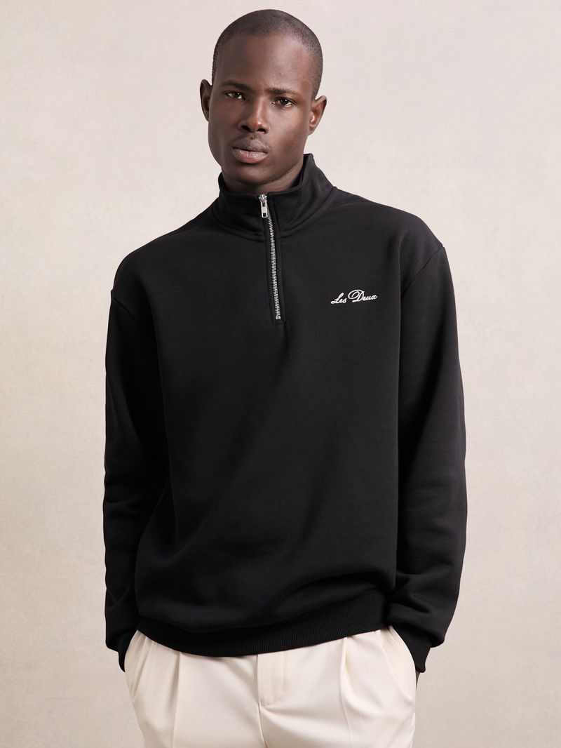 Les Deux Cotton Half-Zip Sweatshirt In Black