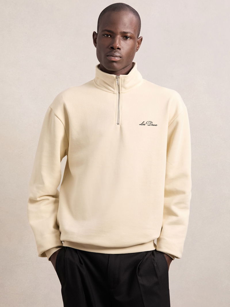 Les Deux Cotton Half-Zip Sweatshirt In Ivory