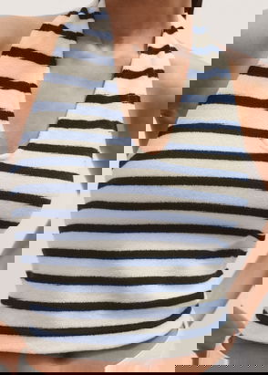 The Rebecca cropped top is crafted from lightweight linen in a bold colour-block design. It features a halter neckline with a button fastening at the nape, and an open back that ties for an adjustable fit. 100% linen. Colour-block design. Halter neckline. Self-tie at the reverse.