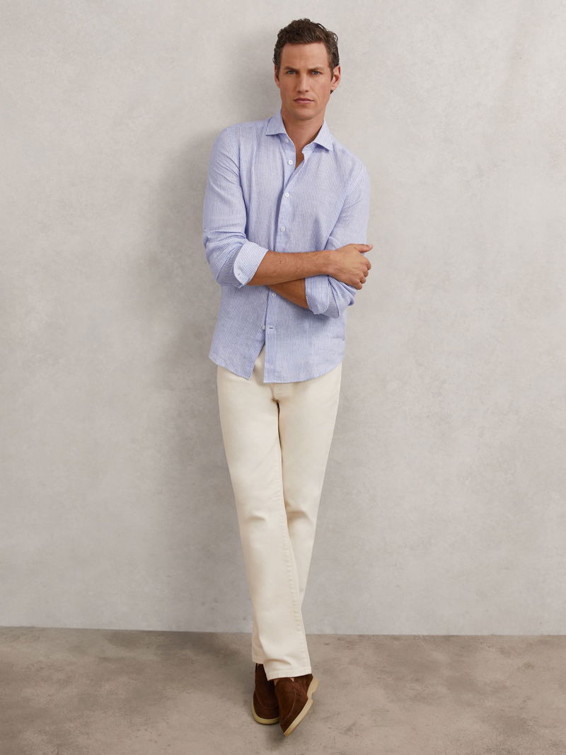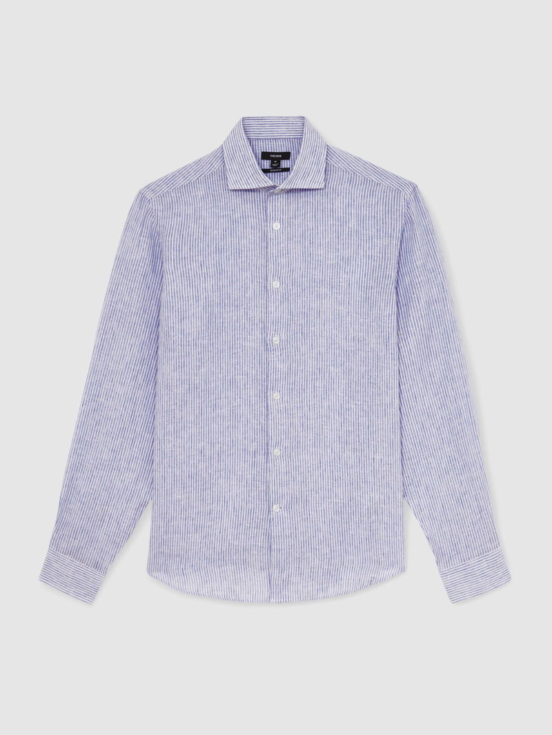Linen Stripe Long-Sleeve Shirt In Bengal Blue White