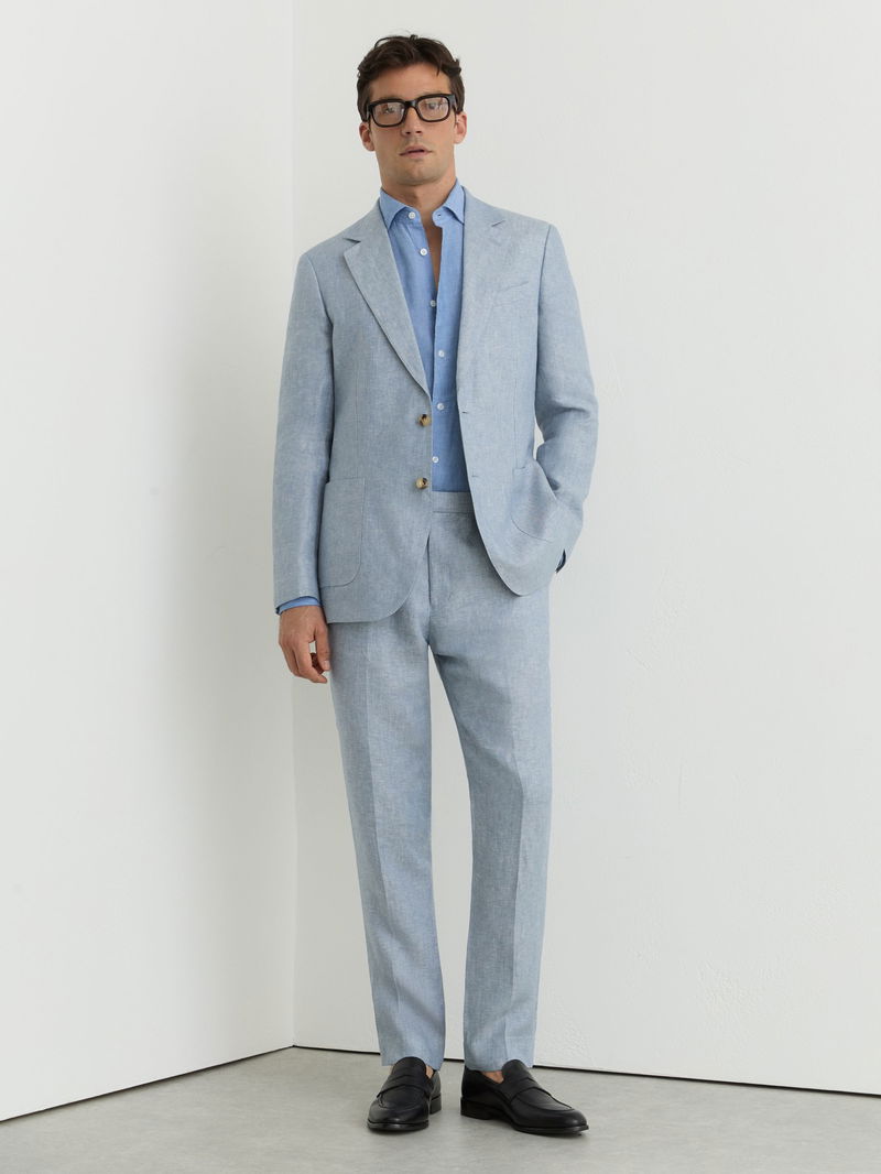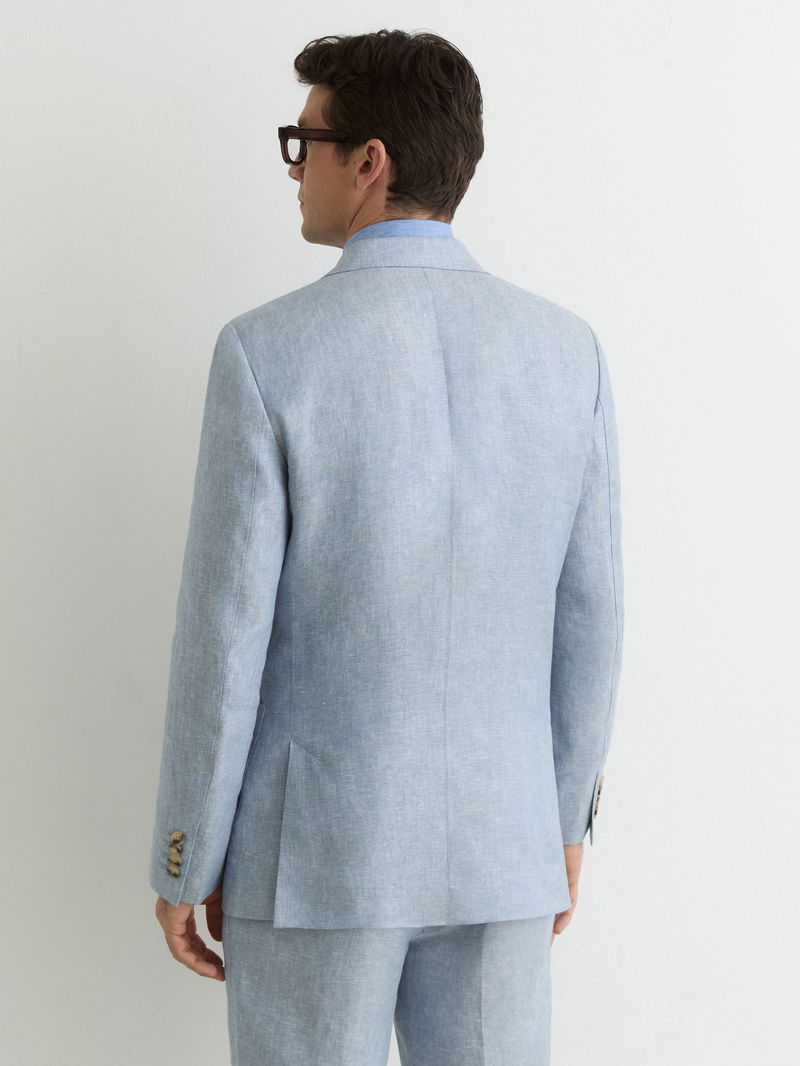 Linen-Twill Single-Breasted Tailored-Fit Blazer In Soft Blue