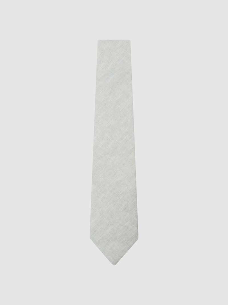 Linen Woven Tie In Light Sage Green