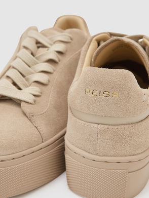 These leather trainers are set on a thick rubber sole for a modern silhouette. They’re designed with raffia panels to the sides and toe box, and they’re complete with contrast overlock stitching, perfect for summer styling.