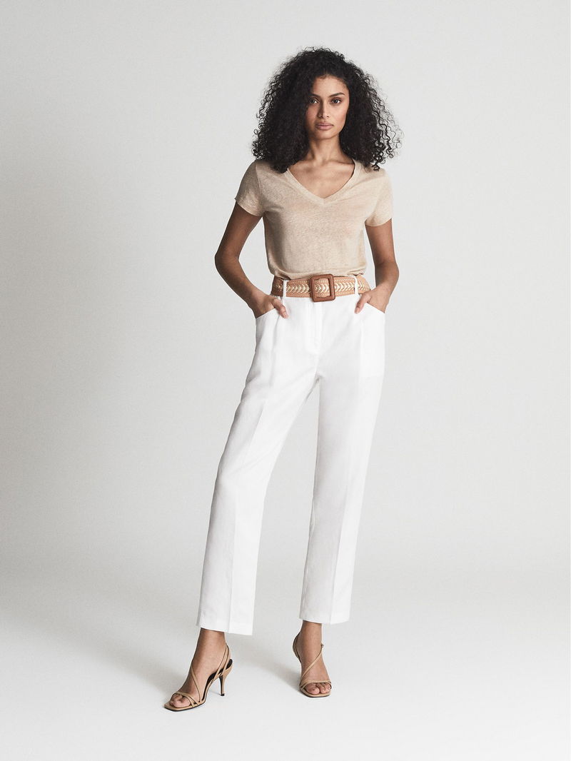 The Lottie T-shirt is a staple in any wardrobe for casual weekend plans. This design is cut from pure linen that's lightweight and soft to the touch. This style is complete with a V-neckline and short sleeves. Team it with denim and layer it under a leather jacket for an off-duty edit.