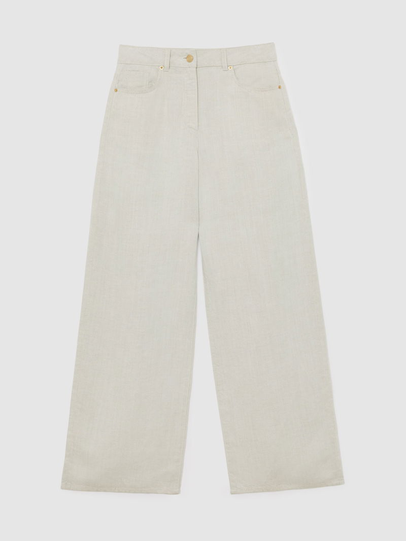 The Neutral Carmen trousers are cut from a lyocell-linen blend with a wide-leg silhouette and a softly structured drape. A classic five-pocket design completes the look.