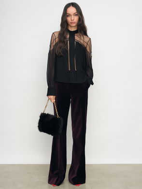 Lightweight and semi-sheer in fabric, the Magda blouse features a dainty, pleated front and back panel. It’s fastened with a concealed closure which leads to a point collar and flared sleeves exaggerate the silhouette. Pair with relaxed separates for the full mood.