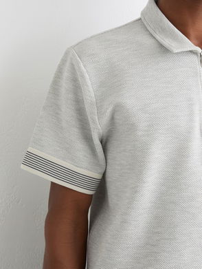 The Maxwell short-sleeved polo in airforce-blue is knitted to a slim fit and finished with a zip-neck detail, nodding to the preppy styles of the Fifties. Style it with a pair of tailored trousers, sneakers and finish with a bomber jacket for a relaxed retro vibe.