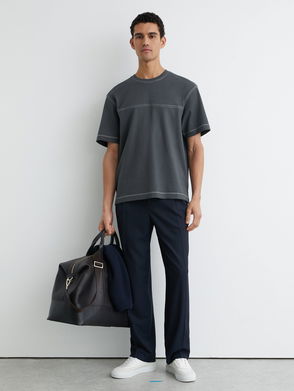 Mercerised cotton gives the Airforce Blue Leo T-Shirt a rich depth of colour and a subtle, refined sheen. This classic crew neck is enhanced with horizontal ribbing, adding a tactile finish that elevates its overall design.