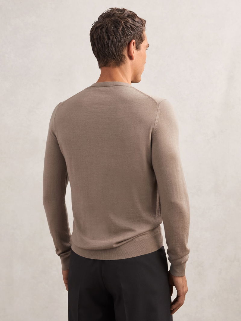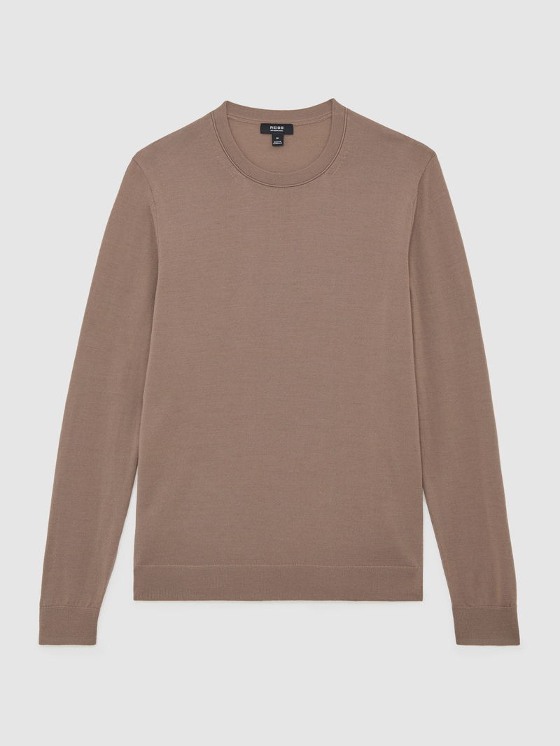Merino Wool Crew-Neck Jumper In Camel Brown