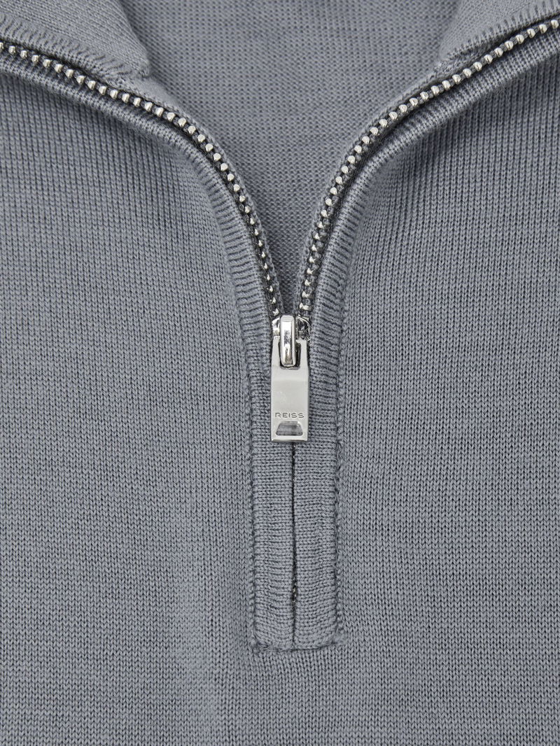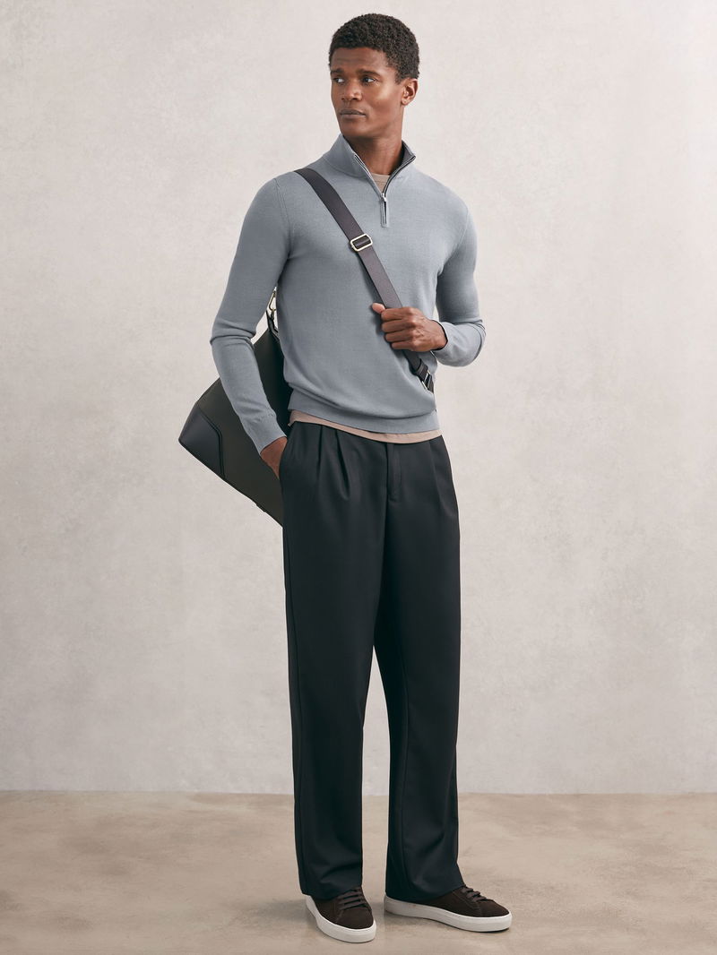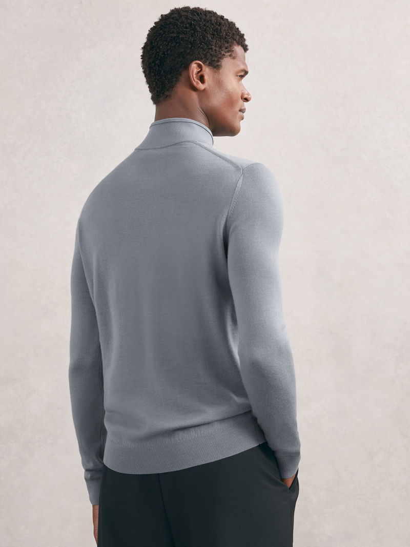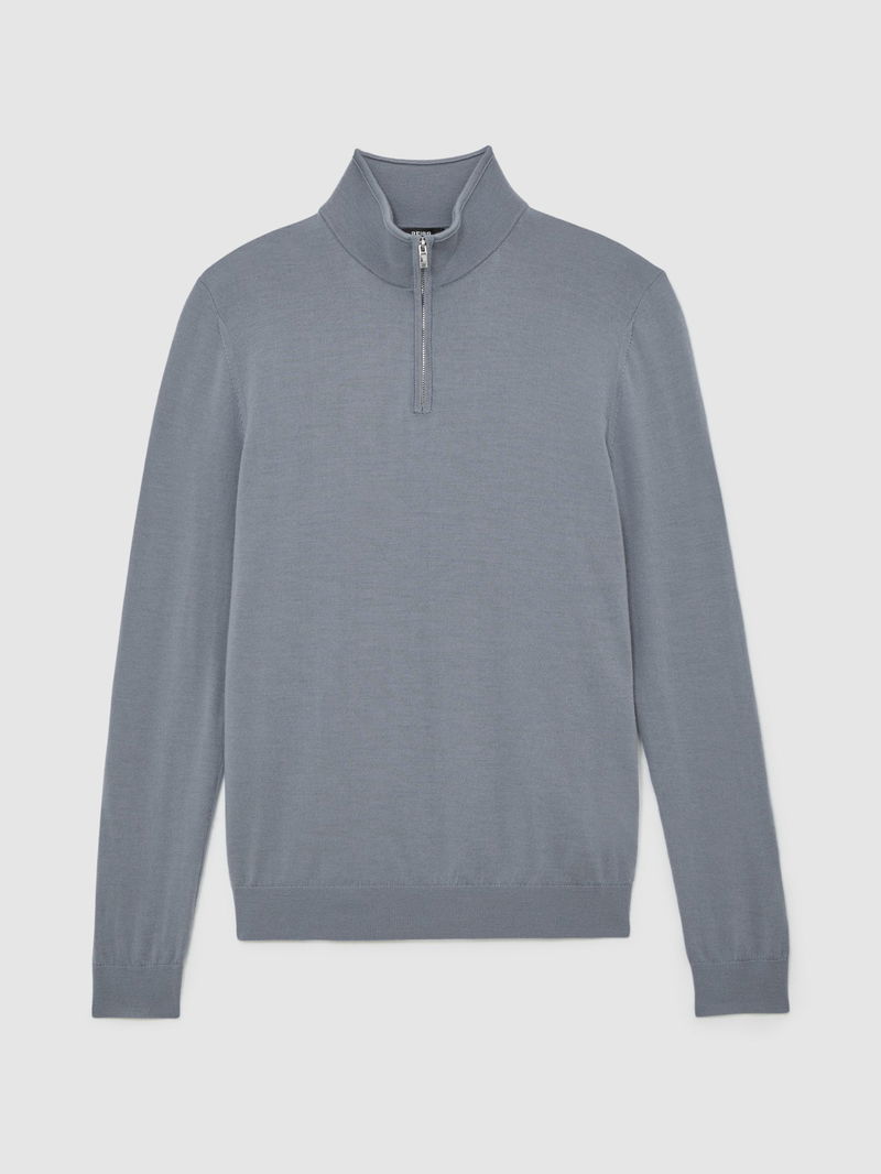 Merino Wool Half-Zip Funnel Neck Jumper In Steel Blue
