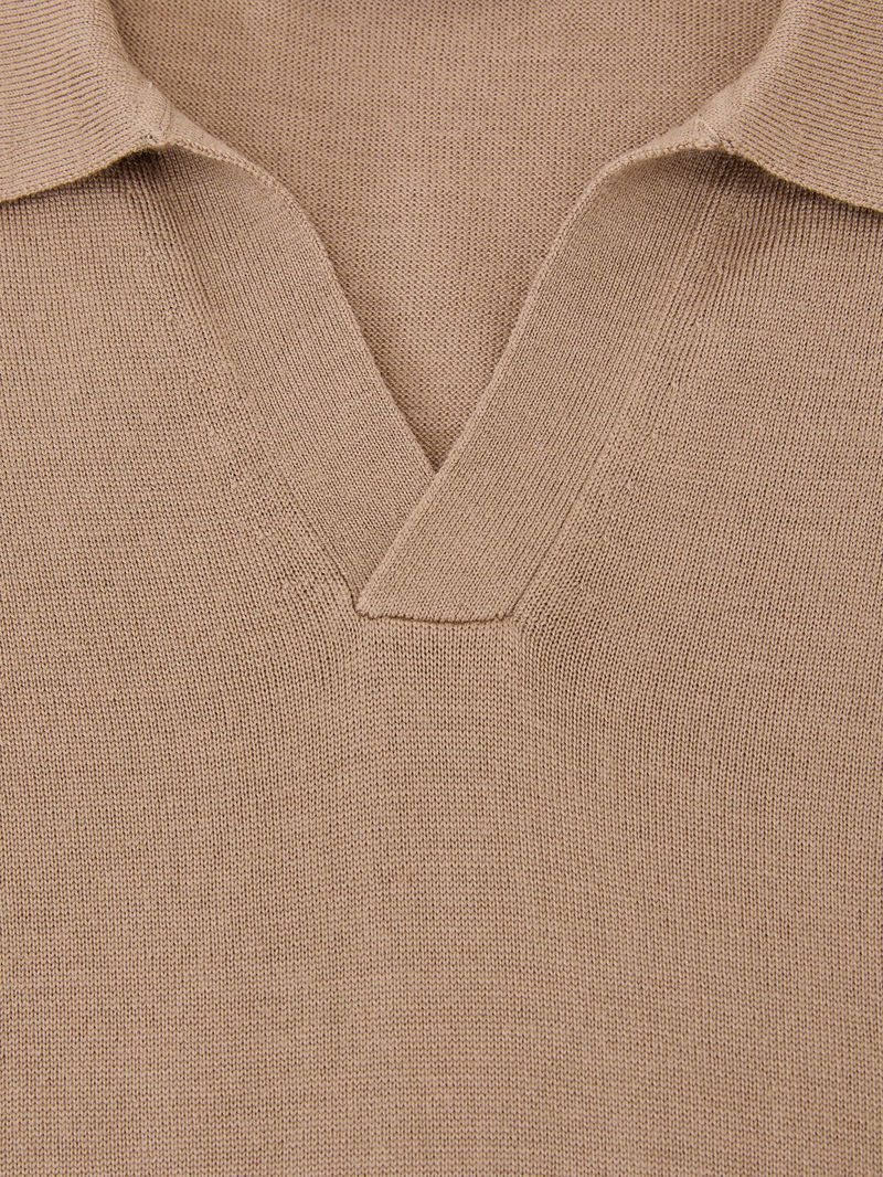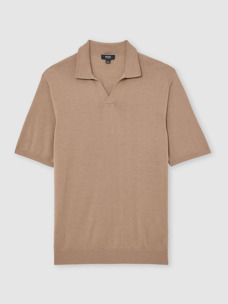 Merino Wool Open-Collar Polo Shirt In Camel Brown
