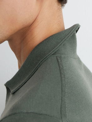 The warm grey Duchie polo shirt is crafted from soft merino wool in herb green. An open collar adds a slightly casual edge.
