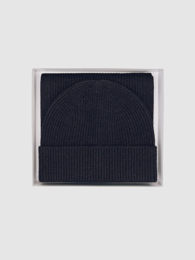 Merino Wool Scarf And Beanie Gift Set In Navy